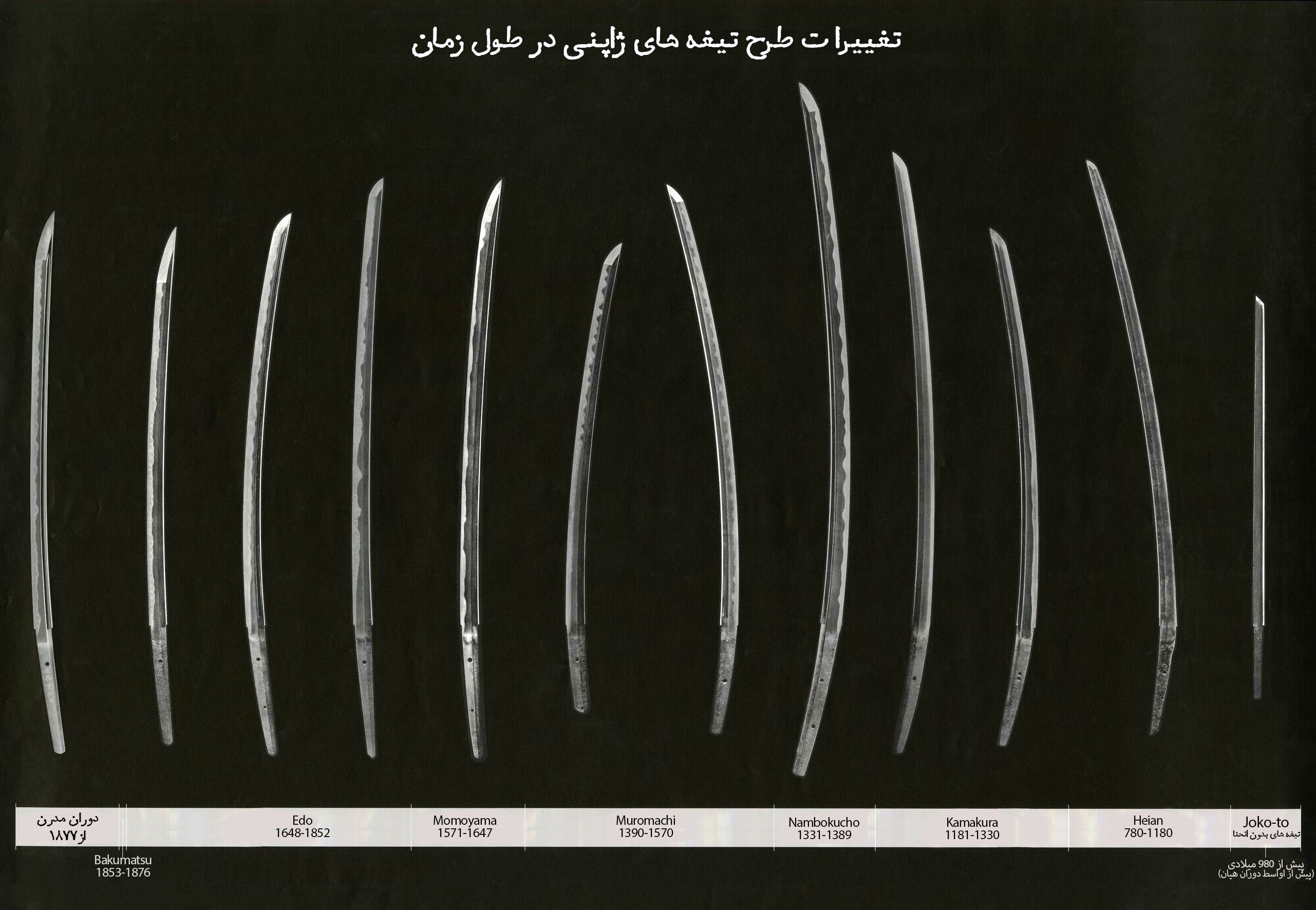 با آنکه امروزه نمادِ شاخصِ شمشیرهای ژاپنی کاتاناها هستند، با این حال ژاپنی ها سلاح هایشان را در انواع مختلفی می ساختند. زیرا علاوه بر آشوب های داخلی و تهاجم خارجی، ابزار دشمنان نیز در حال تغییر بود. به همین دلیل برخی سلاح ها انحنای بیشتری داشتند تا ضربات قوی به زره وارد کنند و برخی ها چون کاتانا، با انحنای کم مناسب حمله ی سریع و ضربه به اعضای مبارز بود. در تصویر زیر مشاهده می کنید که شمشیر ژاپنی در دوران مختلف از نظر ظاهری تغییراتی داشته.