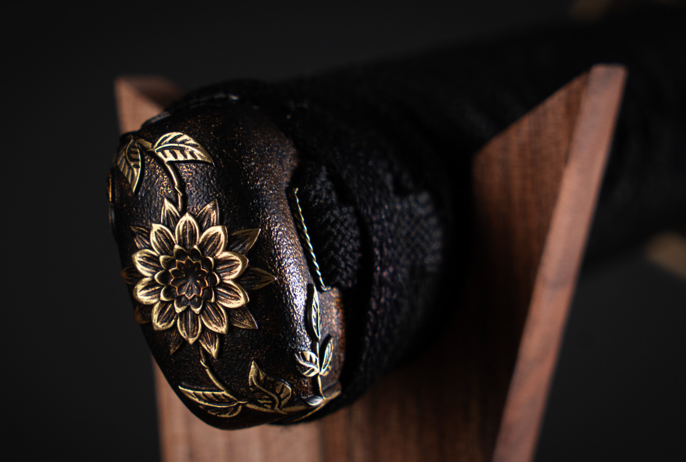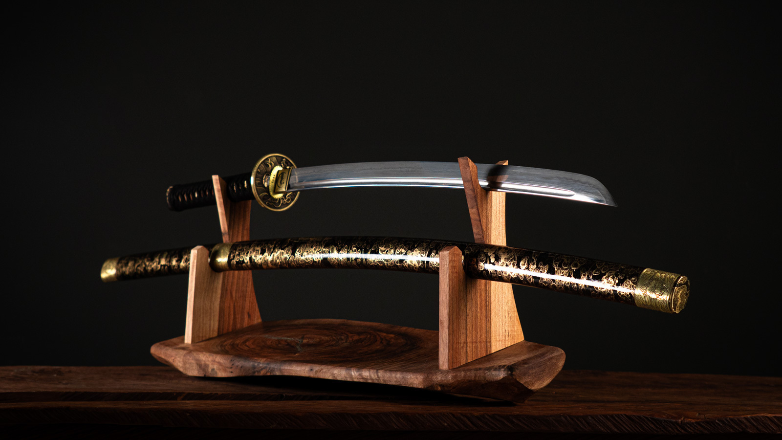 در ساخت پایهی نگهدارنده، از چوب گیلاس و گردو با پوشش طبیعی استفاده شده تا هماهنگ با شمشیر باشد. فرم مینیمال پایه اجازه میدهد تمرکز بر خود شمشیر بماند، بدون حواسپرتی یا اغراق بصری.